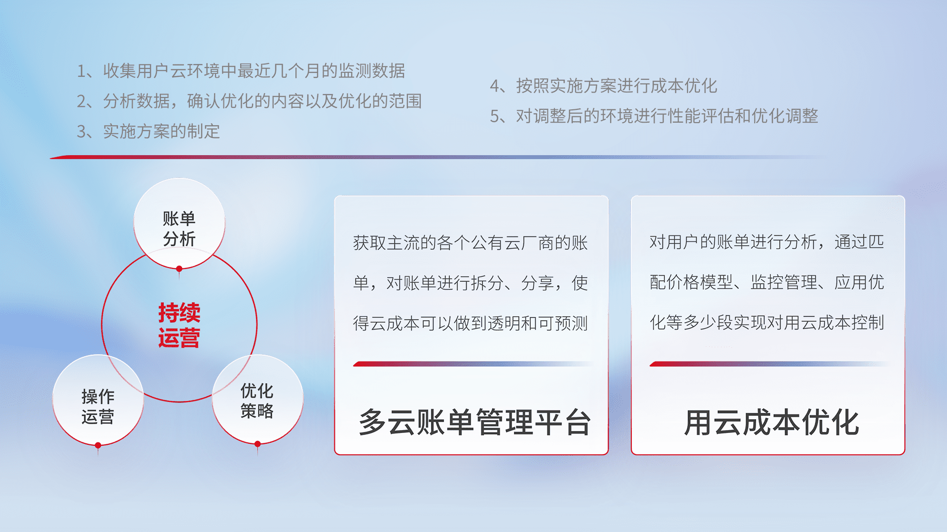 运用智能化工具分析云资源,,,提供日常费用可视化工具,,,,自动账单拆分,,,成本优化云上费用,,,,降本增效。。